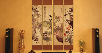 "Room of Three Rare Treasures" brand painting and calligraphy works of praise